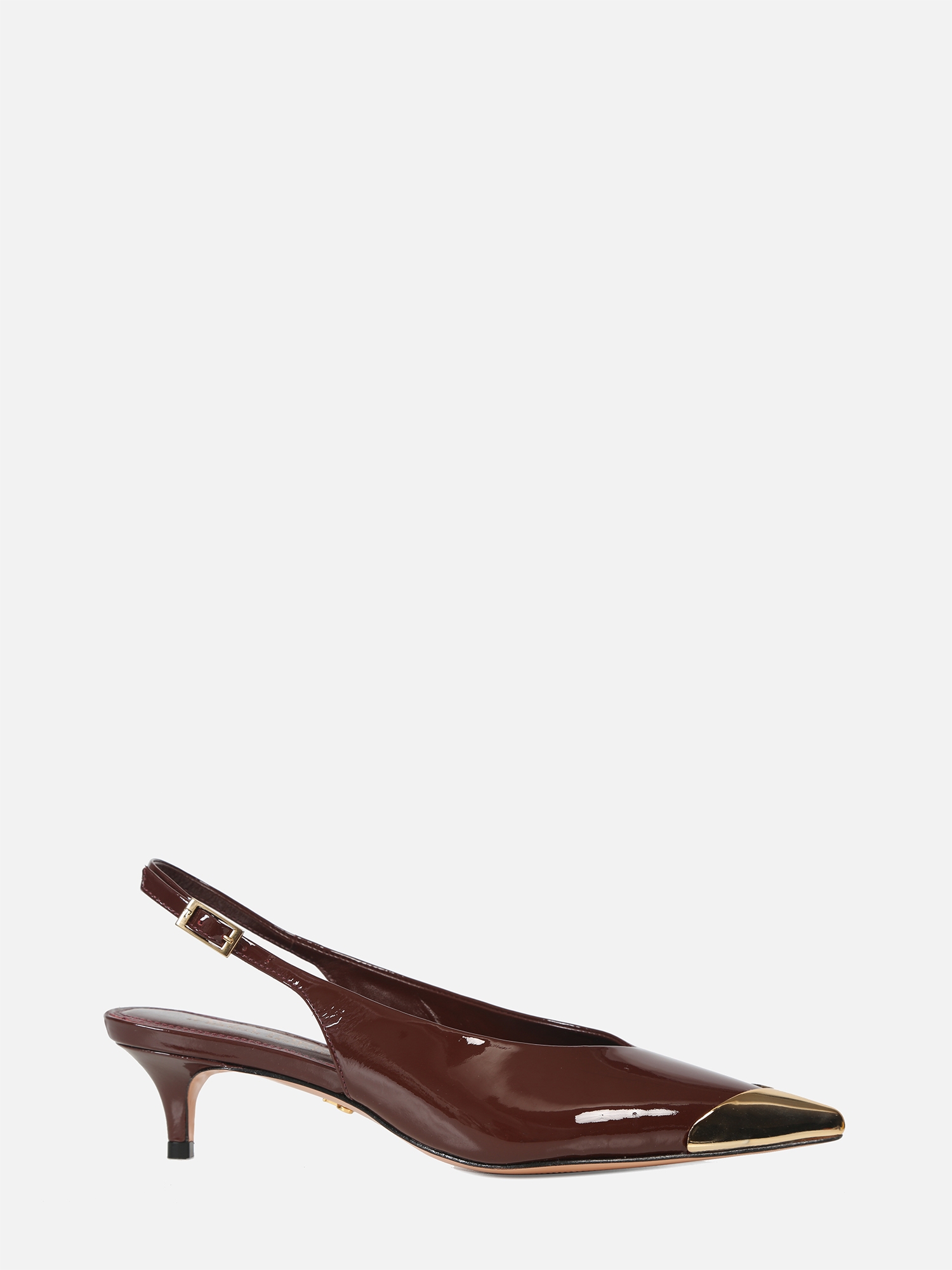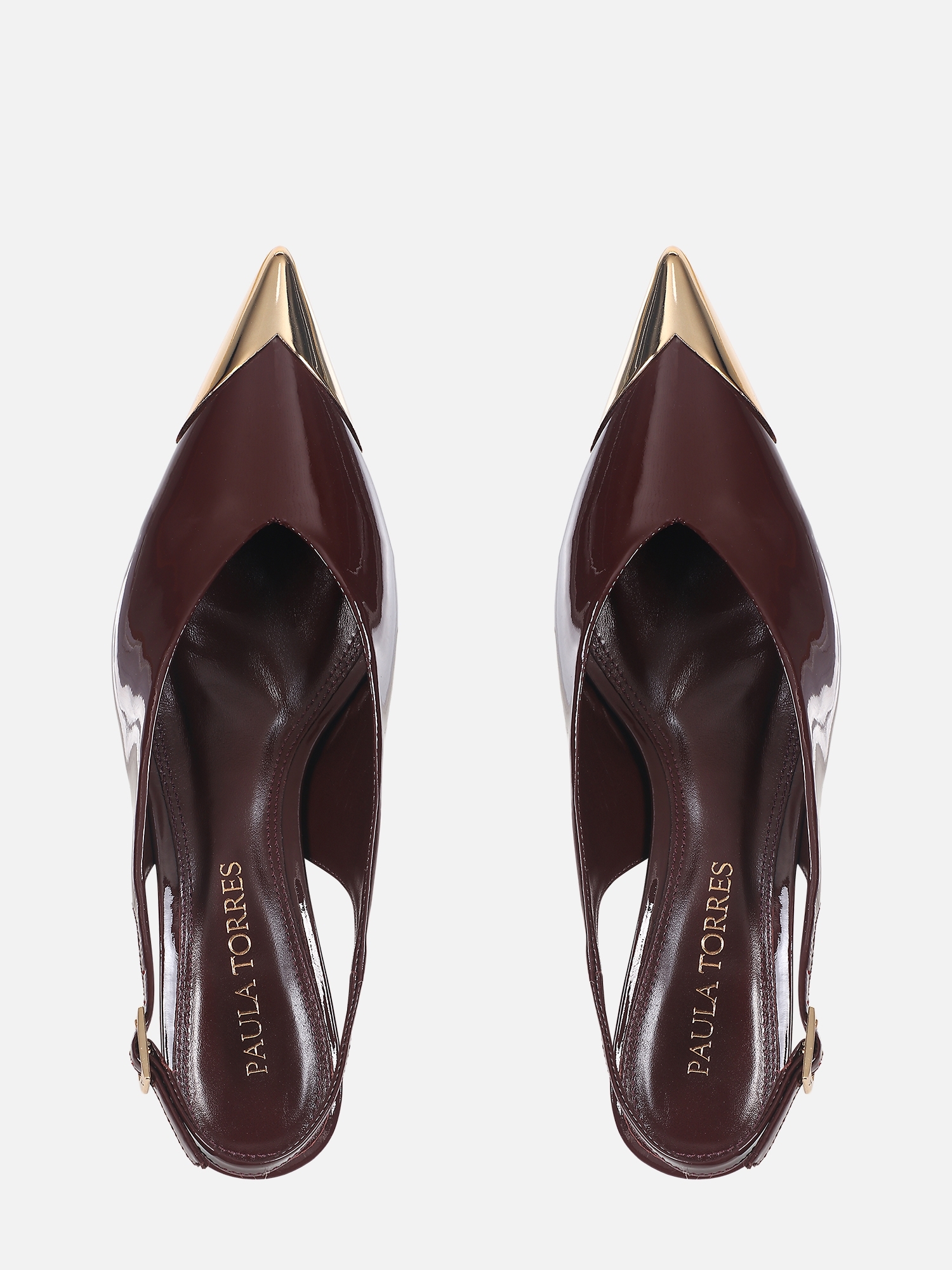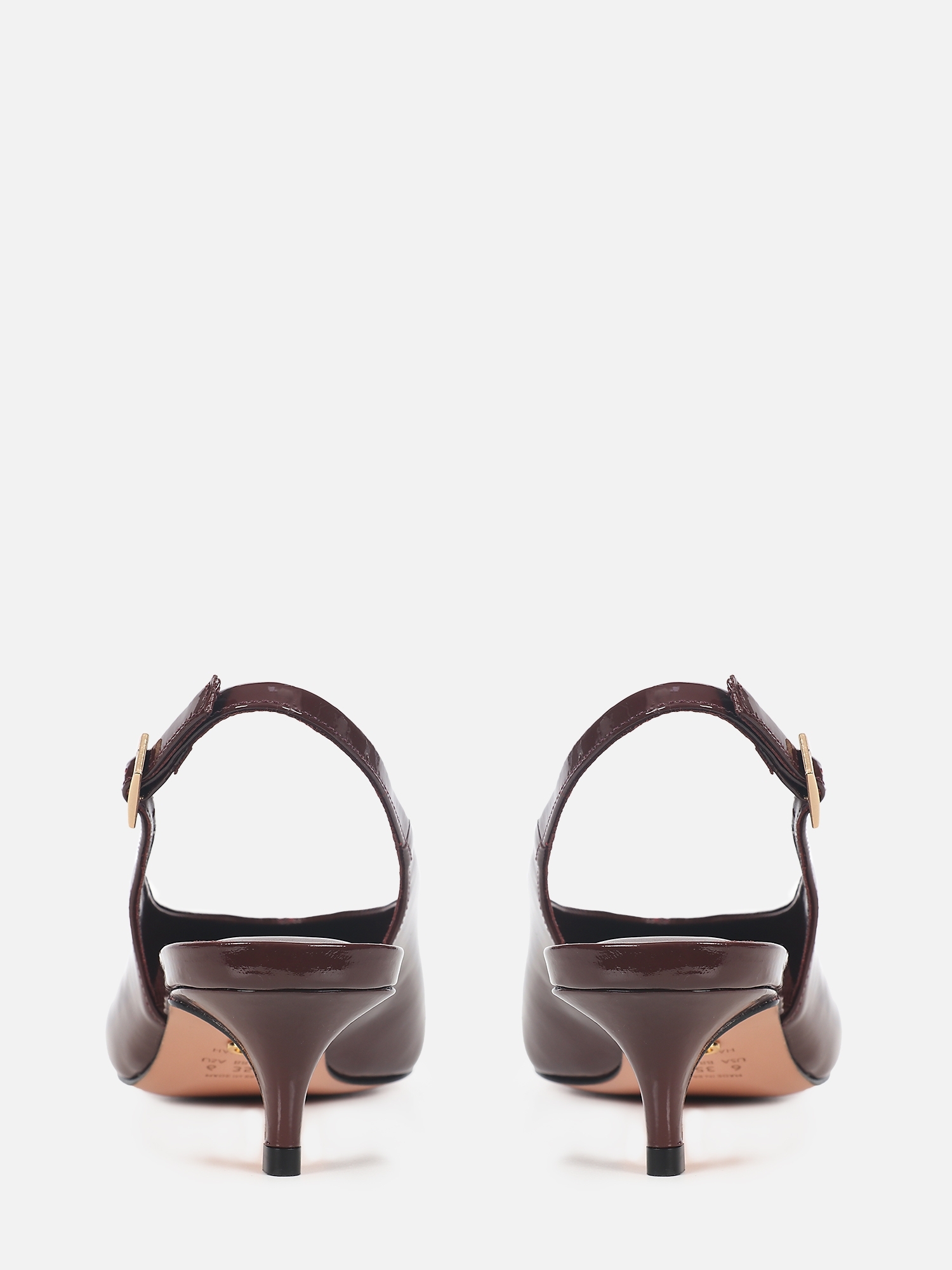 O Scarpin Liz é confeccionado em verniz macio. O modelo possui design slingback com fivela ajustável, que garante melhor ajuste ao pé. Apresenta bico fino com biqueira em ABS e decote em “V”, que contribuem para alongar a silhueta. Conta com salto baixo fino e solado de couro, que garantem durabilidade e bom acabamento.