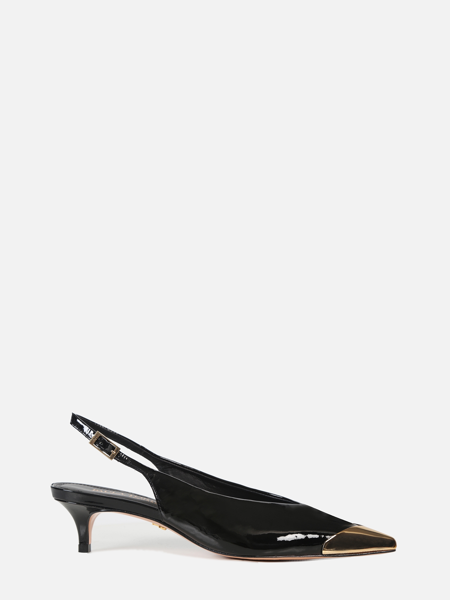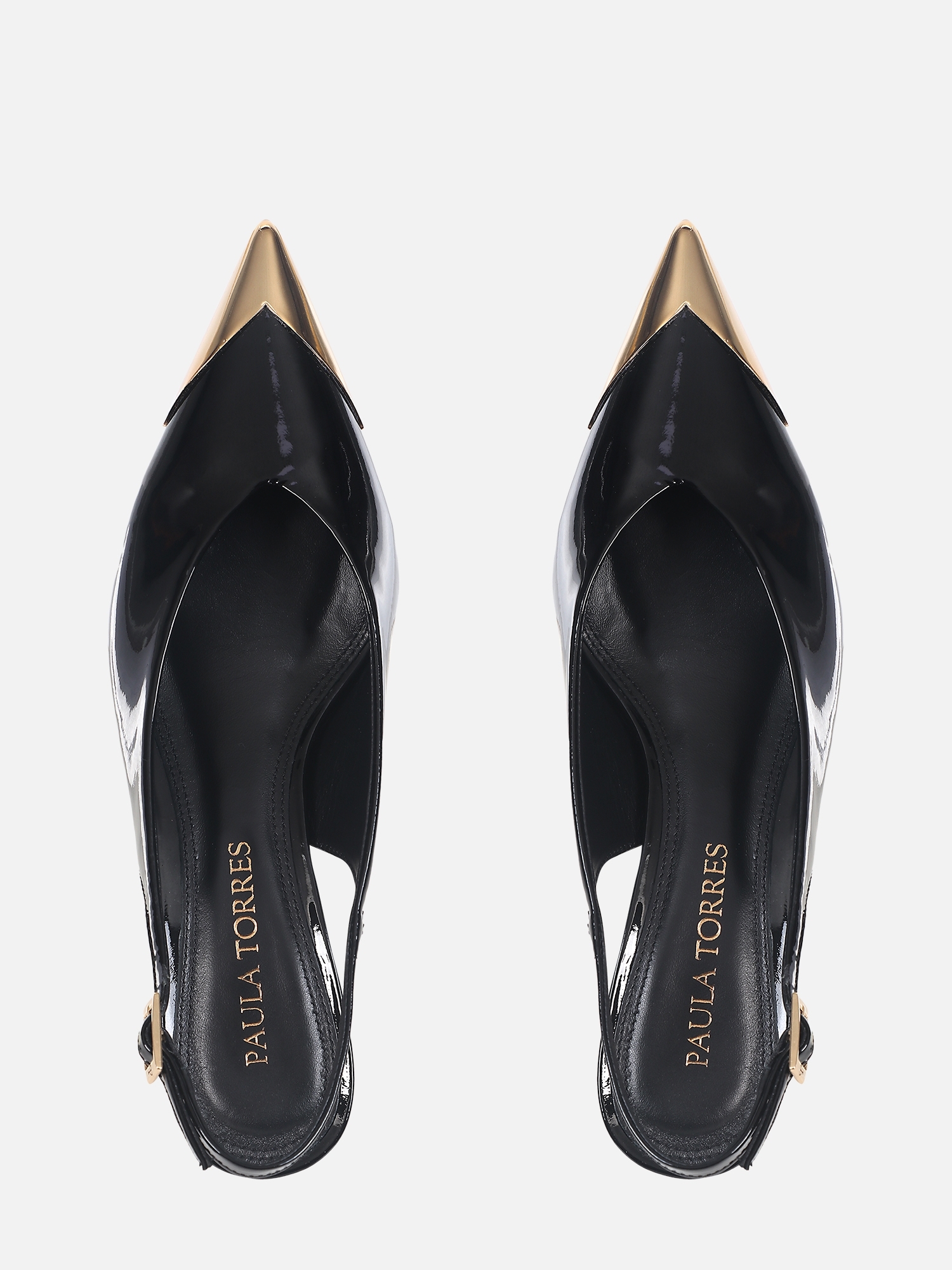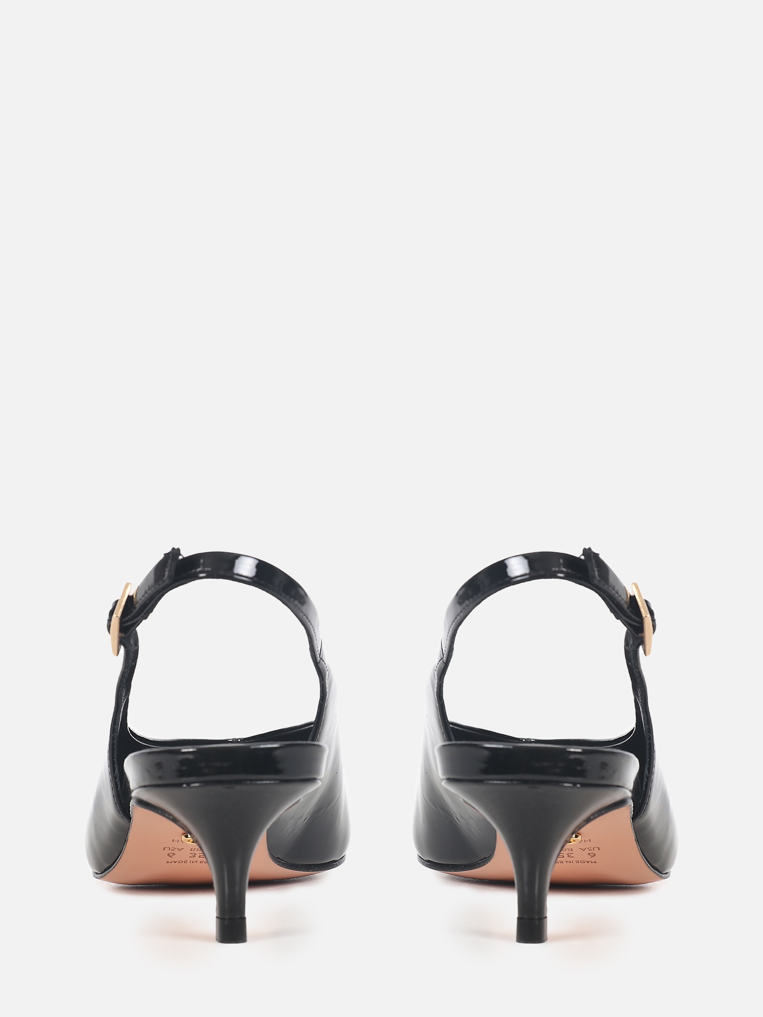 O Scarpin Liz é confeccionado em verniz macio. O modelo possui design slingback com fivela ajustável, que garante melhor ajuste ao pé. Apresenta bico fino com biqueira em ABS e decote em “V”, que contribuem para alongar a silhueta. Conta com salto baixo fino e solado de couro, que garantem durabilidade e bom acabamento.