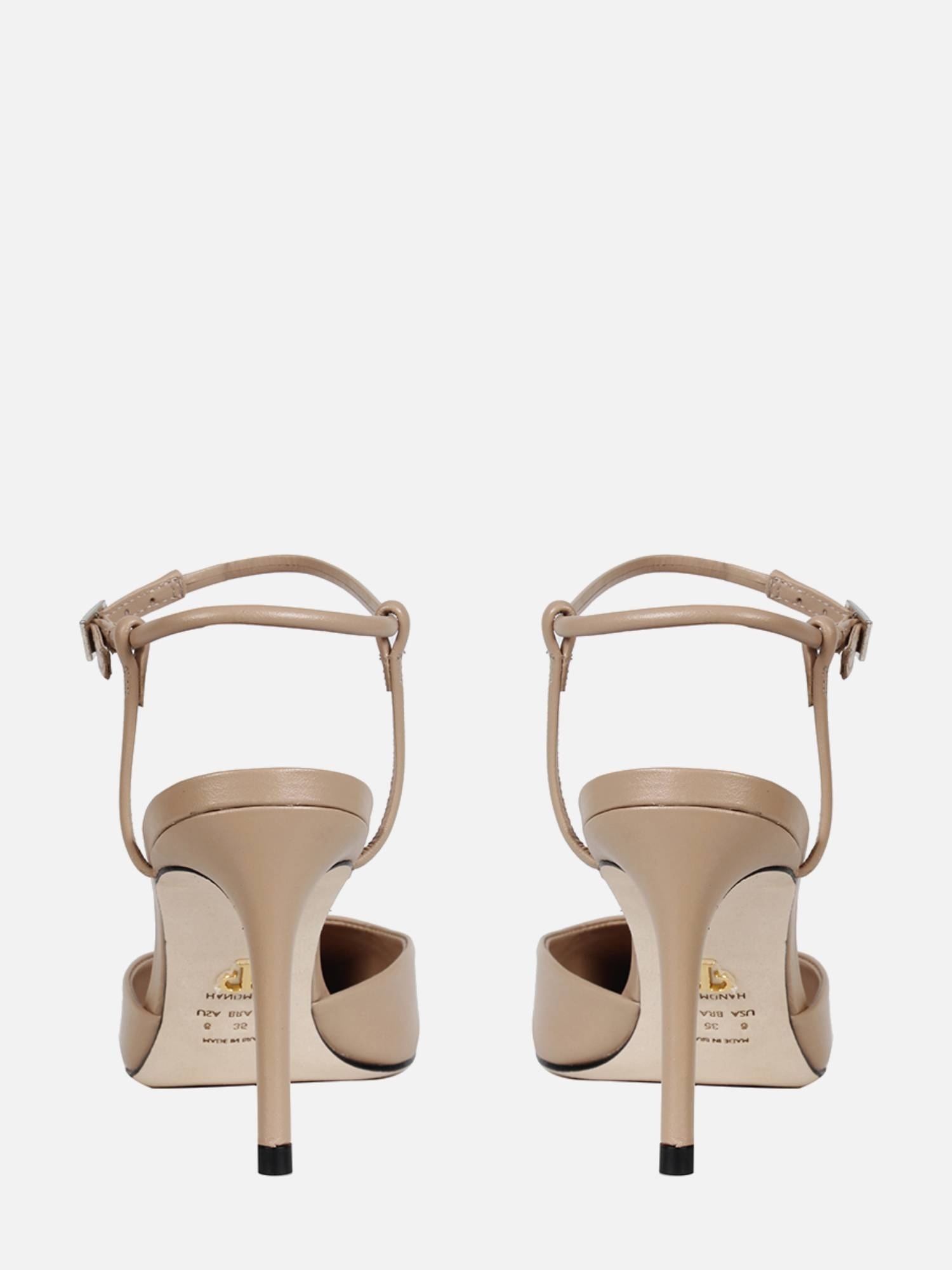 O Scarpin Malu é produzido em couro e apresenta um design sofisticado no estilo ankle strap, com uma tira de ajuste no tornozelo. O modelo possui um bico fino com a aplicação de uma biqueira em metal com banho na cor prata, salto alto fino e solado em couro, garantindo elegância e durabilidade.
