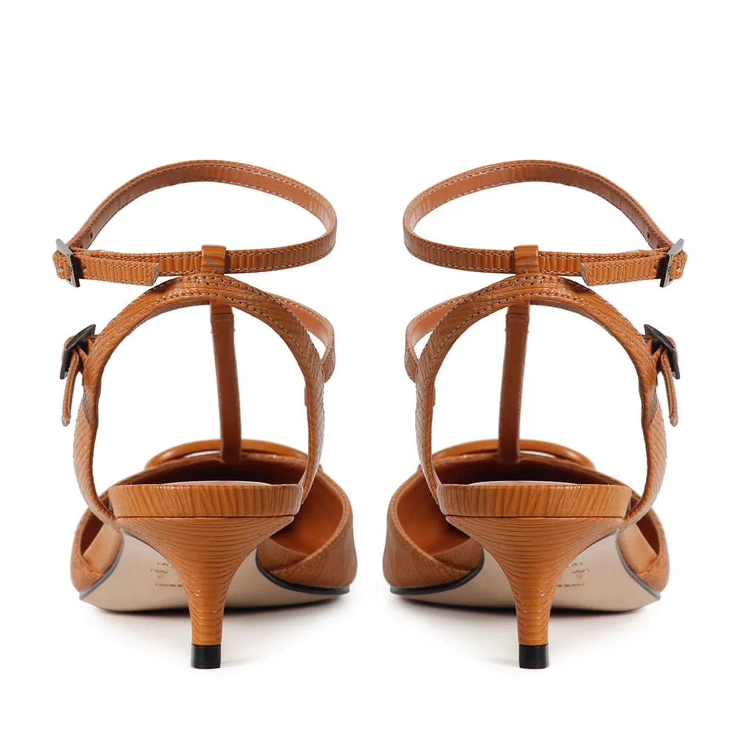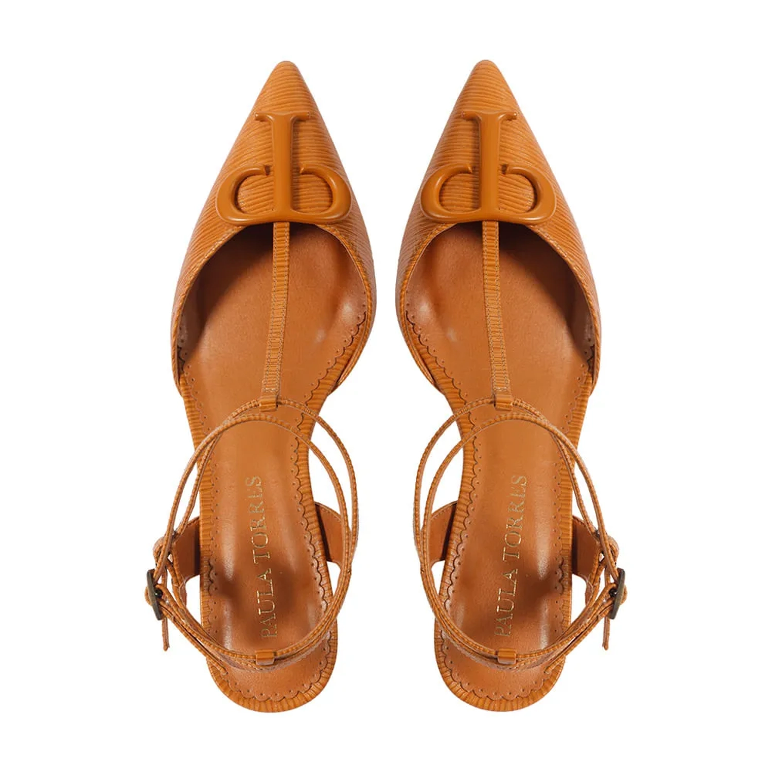 O Scarpin Paula tornou-se um clássico Paula Torres, apresentando uma construção atemporal. Confeccionado em couro, a peça clássica possui bico fino e salto baixo agulha. O destaque é o monograma Paula Torres no mesmo tom do couro, criando uma monocromia que transmite sofisticação. Uma fina tira de couro une a parte frontal a tornozeleira, onde são realizados os fechamentos por fivelas laterais, conferindo charme ao calce.