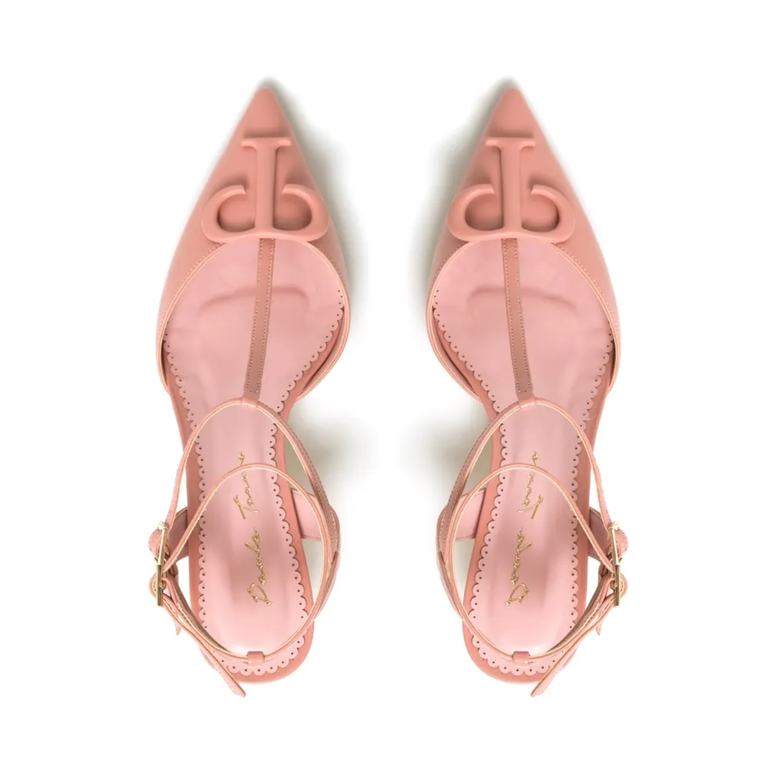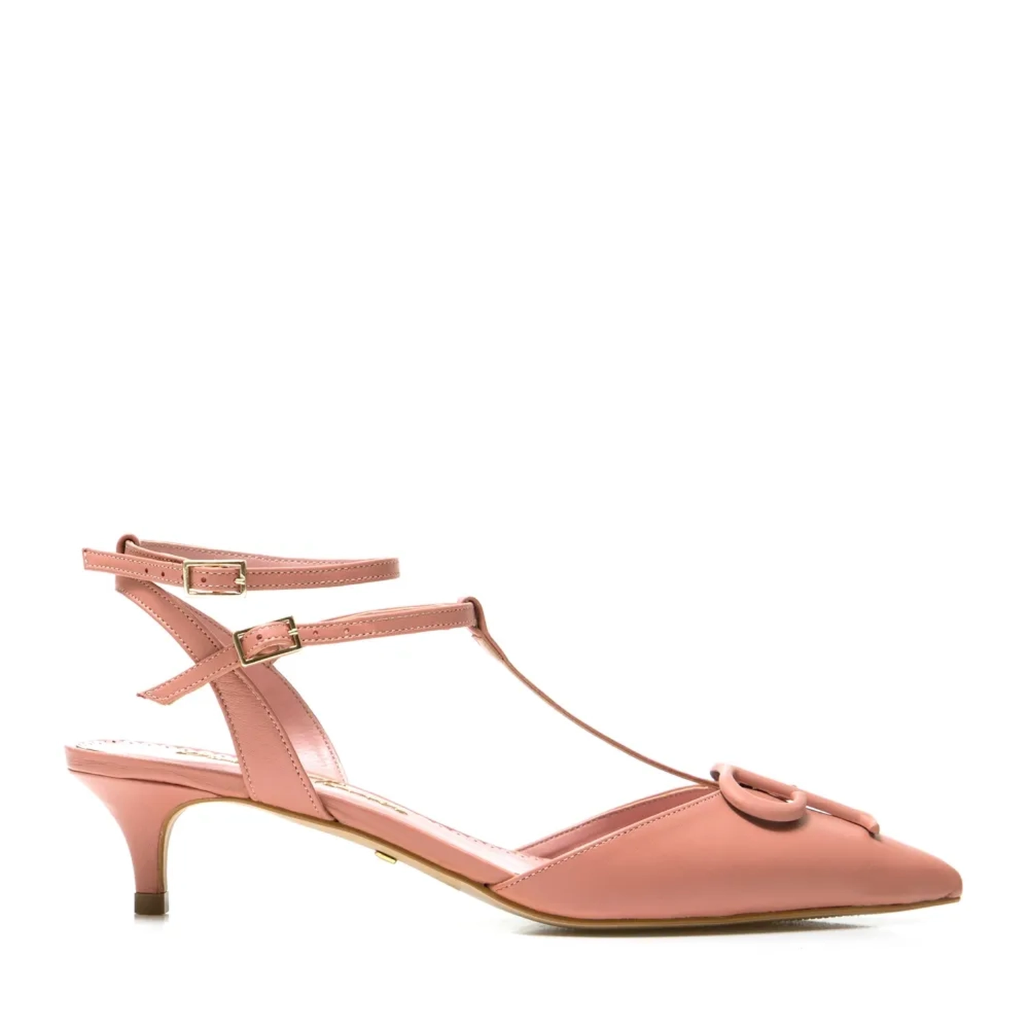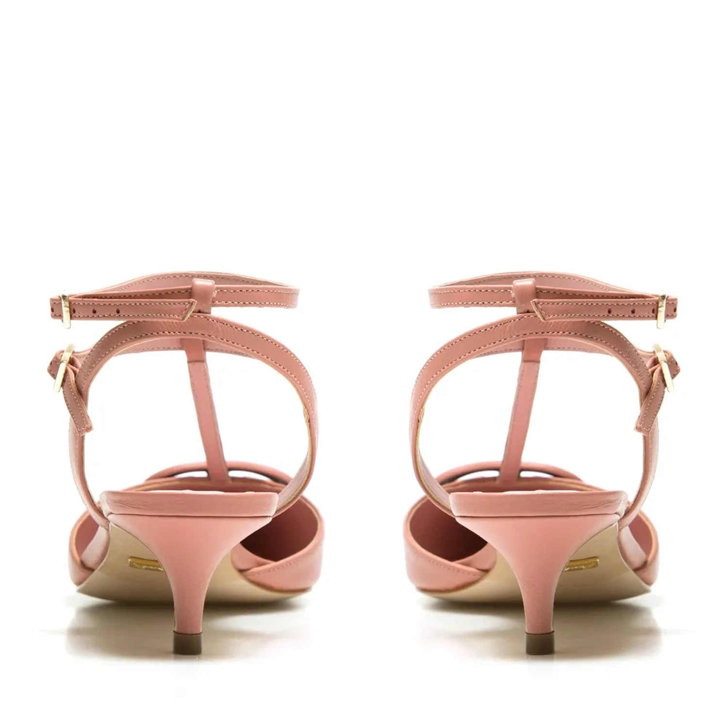 O Scarpin Paula é confeccionado em couro. A peça clássica e atemporal, possui bico fino e tiras finas no tornozelo com ajuste lateral feito por fivela e detalhe superior do monograma Paula Torres Cor: Rosa