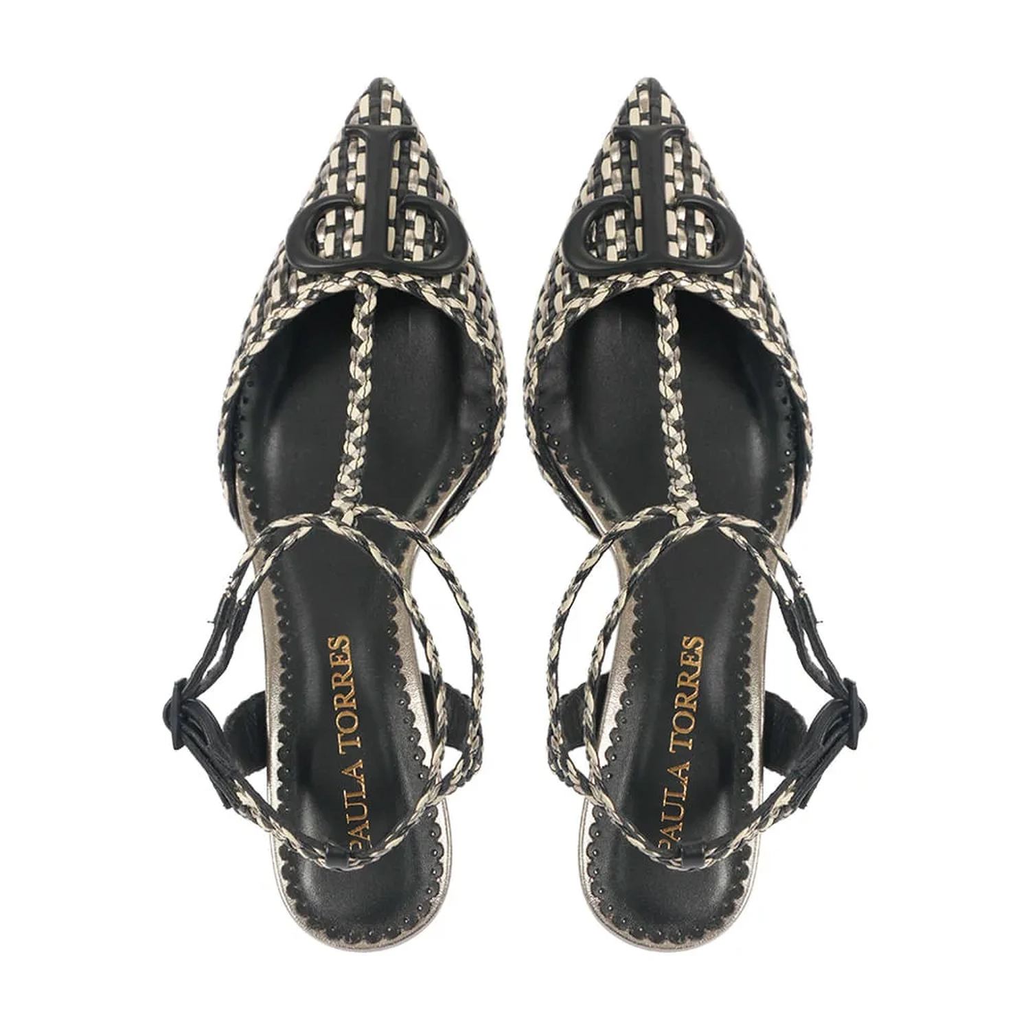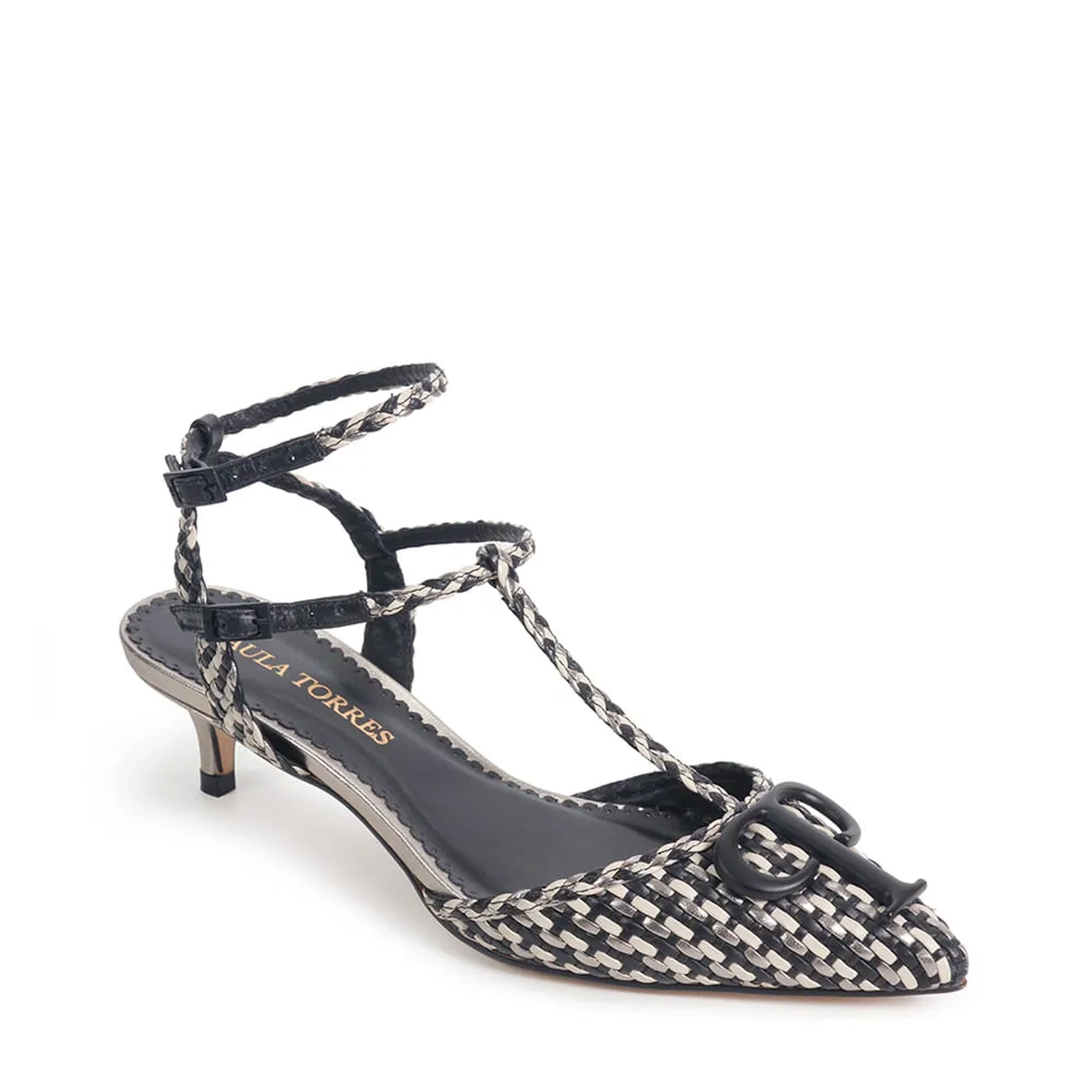 O Scarpin Paula Tresse Preto é um calçado feminino elegante e sofisticado. Confeccionado em napa. Com seu bico fino e salto baixo fino, o scarpin oferece conforto e elegância. O modelo é trabalhado em tressê nas cores preto, baunilha e prata velho, destacando o monograma preto na lateral do calçado. As duas fivelas laterais permitem um ajuste perfeito aos pés, proporcionando um calce firme e seguro.