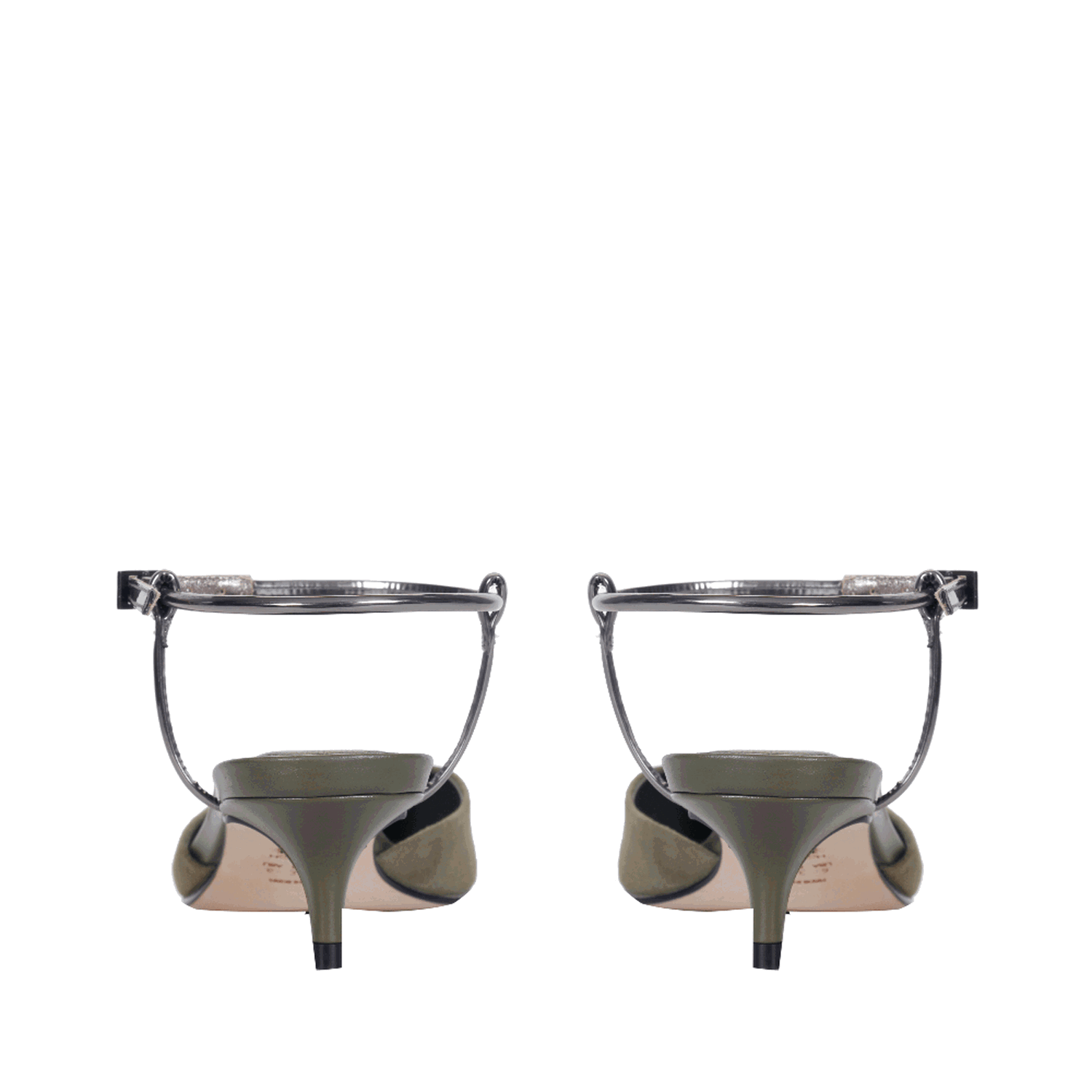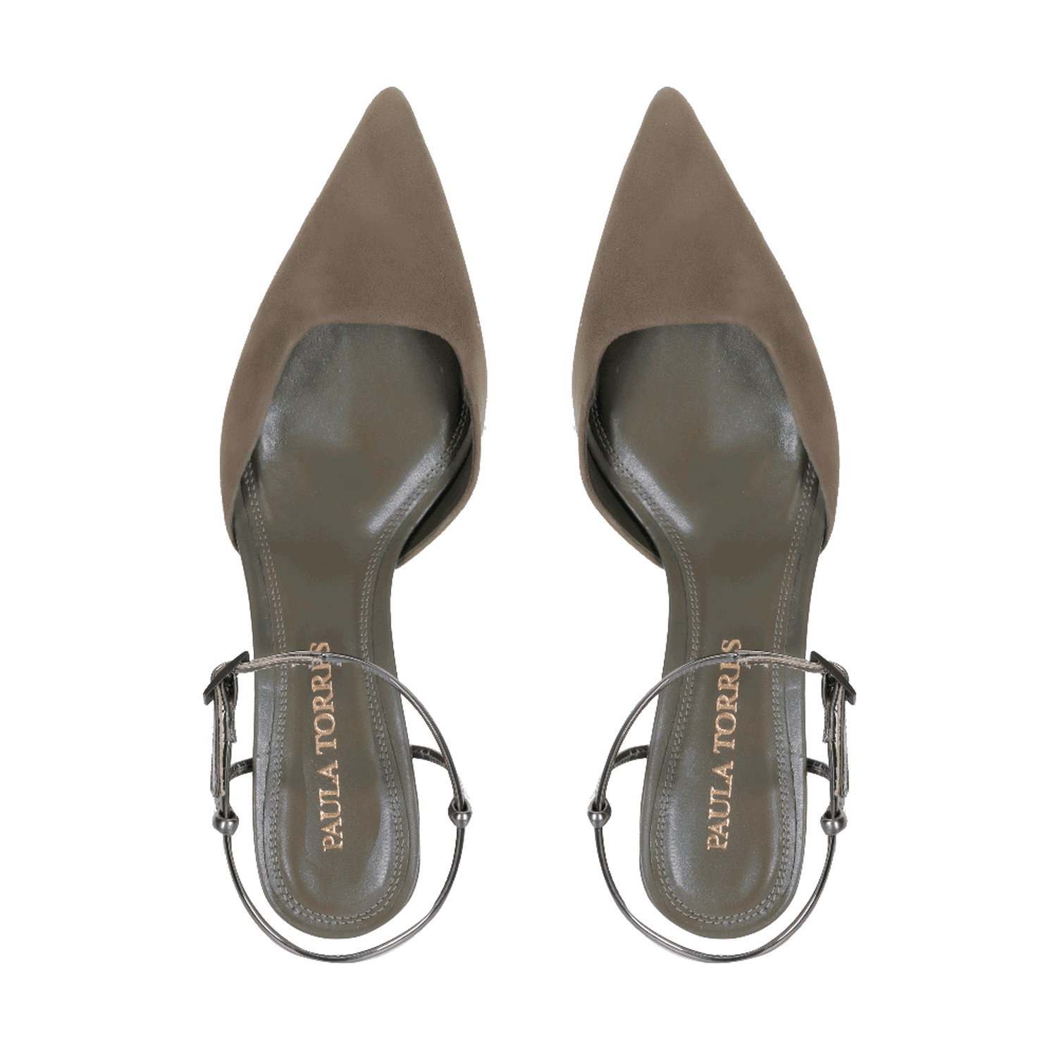 O Scarpin Sintra é um elegante sapato feminino confeccionado em camurça macia. Seu bico fino confere um toque sofisticado ao modelo, enquanto o salto baixo fino proporciona conforto para uso prolongado. O cabedal apresenta uma construção em napa e gáspea em camurça, com um delicado decote quadrado que valoriza a parte frontal dos pés. A parte traseira do cabedal apresenta um acabamento em spechio prata velho, o que confere um toque moderno ao modelo.