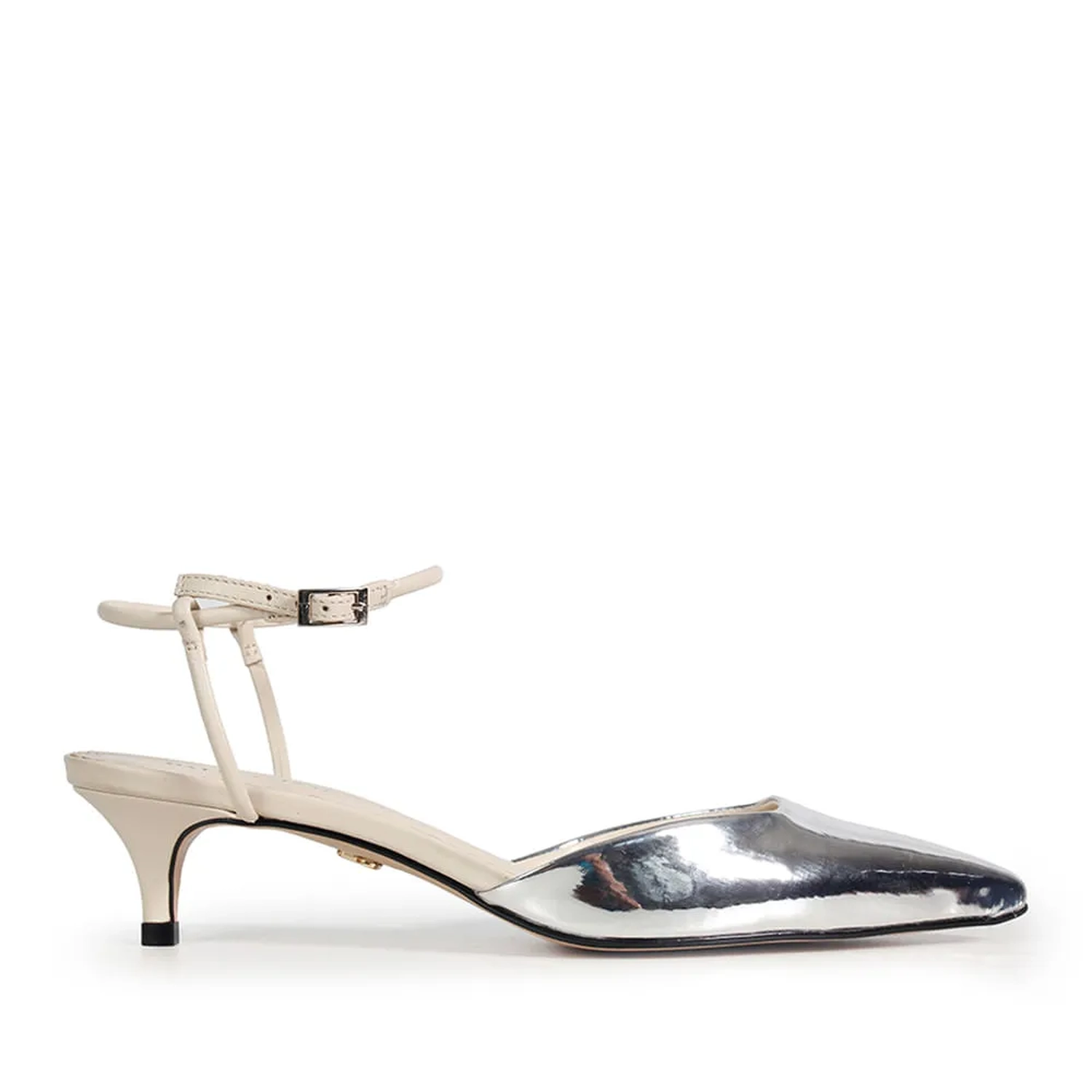 Scarpin Sintra prata, o sapato perfeito para complementar seus looks mais sofisticados. Confeccionado em napa, este sapato apresenta um material tecnológico metalizado, e o cabedal é feito de spechio, o fechamento é feito por uma fivela lateral para garantir um ajuste perfeito em seus pés. O salto em bico fino baixo proporciona um toque de elegância e sofisticação ao visual, garantindo o conforto.