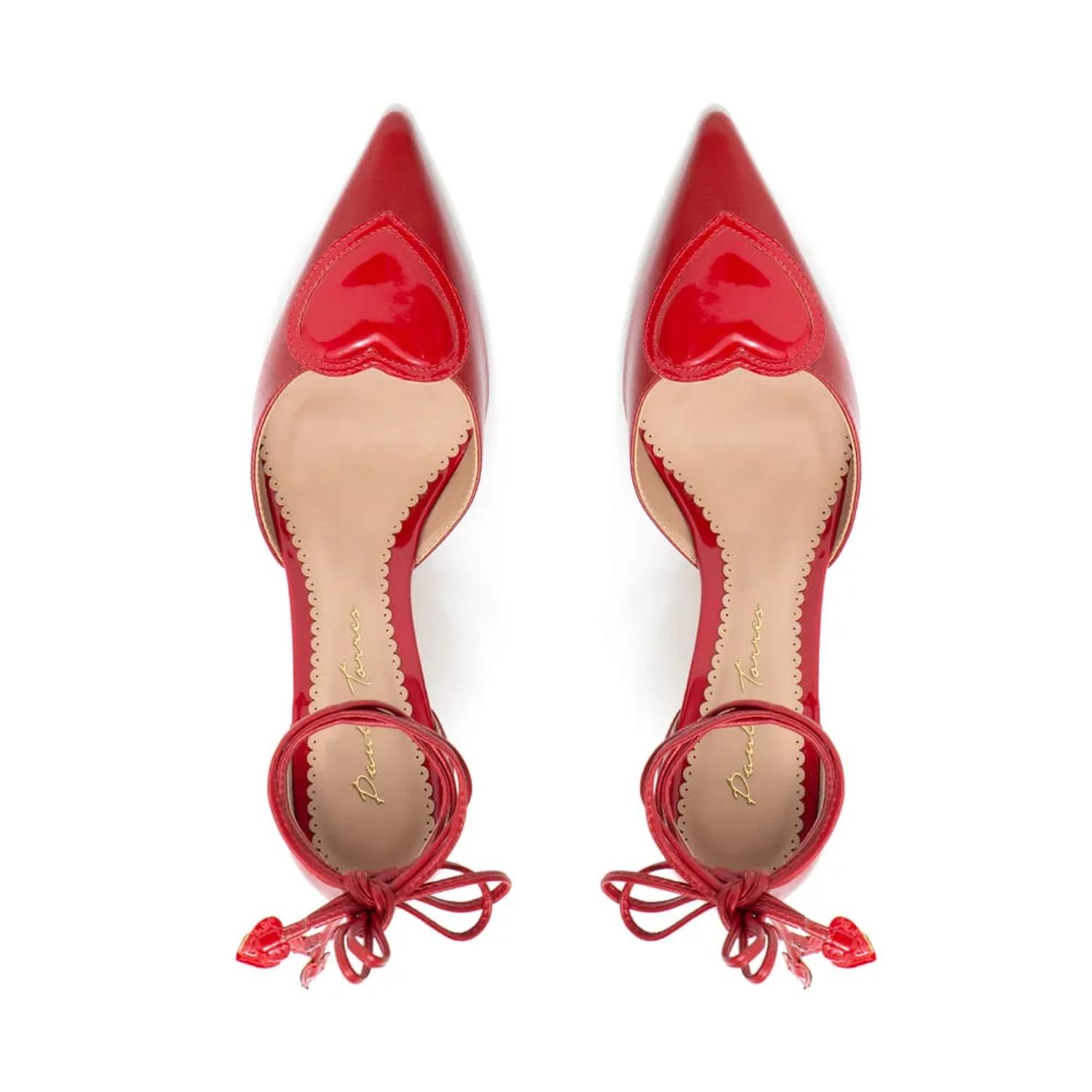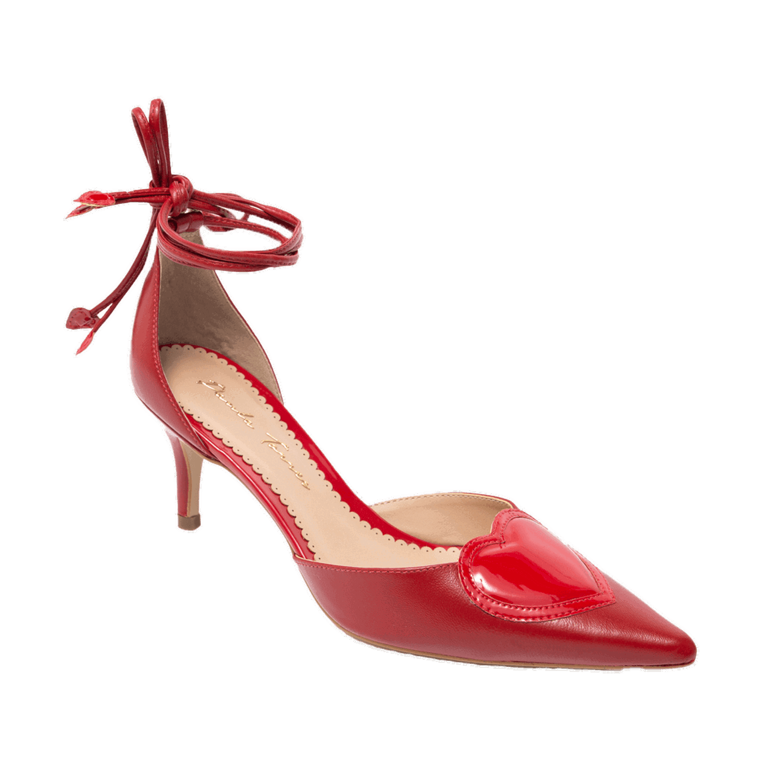 Scapin Sweet Vermelho Scarpin de couro, atemporal e neutro, mas com o toque difereciado do coração em verniz que dá todo um charme para os seus pés. Com a tira de amarrção no tornozelo e o detalhe do barbicacho, salto fino com tamanho médio - execelente opção para quem busca um sapato elegante e confortável para trabalhar e também para aguentar a noite inteira em cima do salto na sua próxima festa. Invista! Cor: Vermelho Salto: 7.0CM