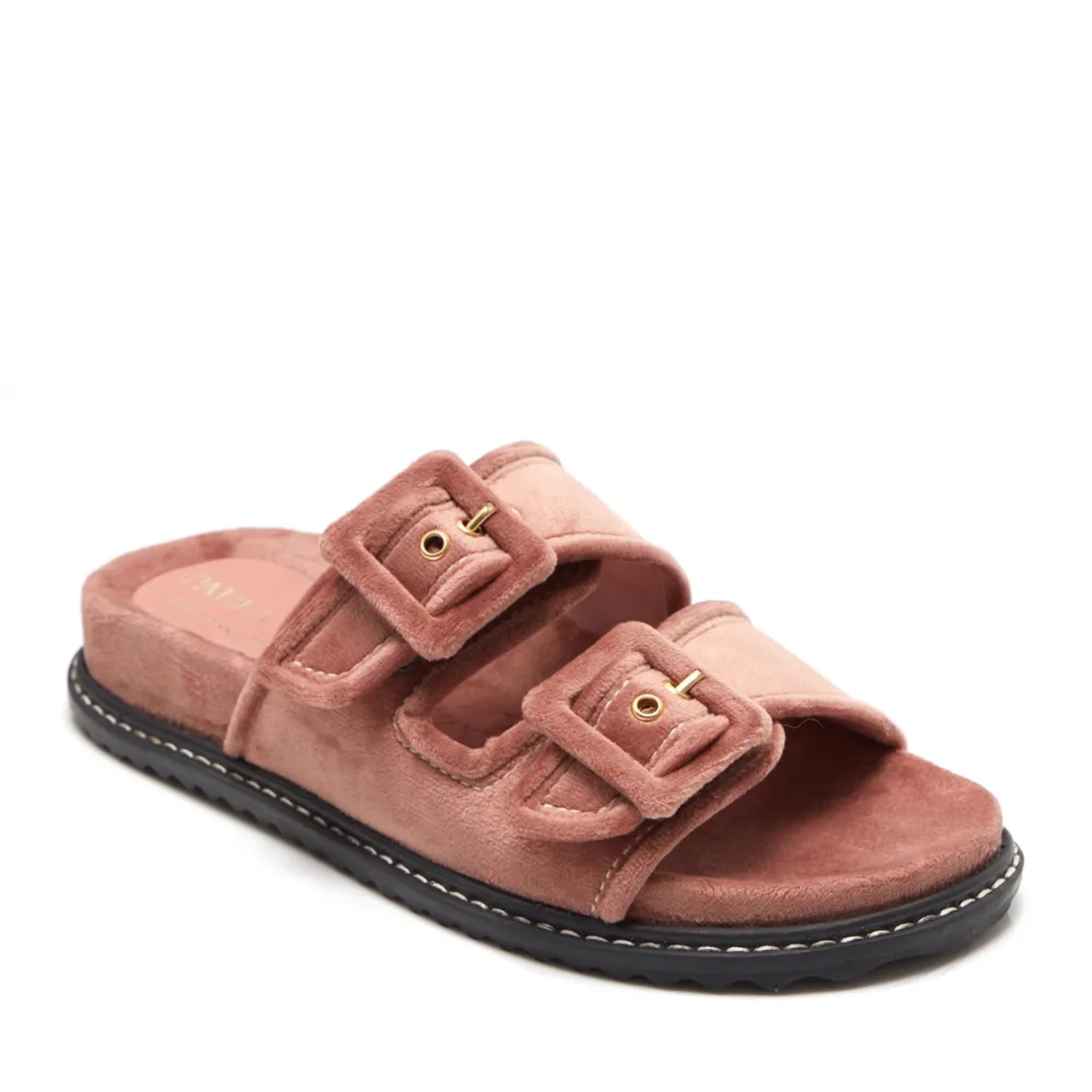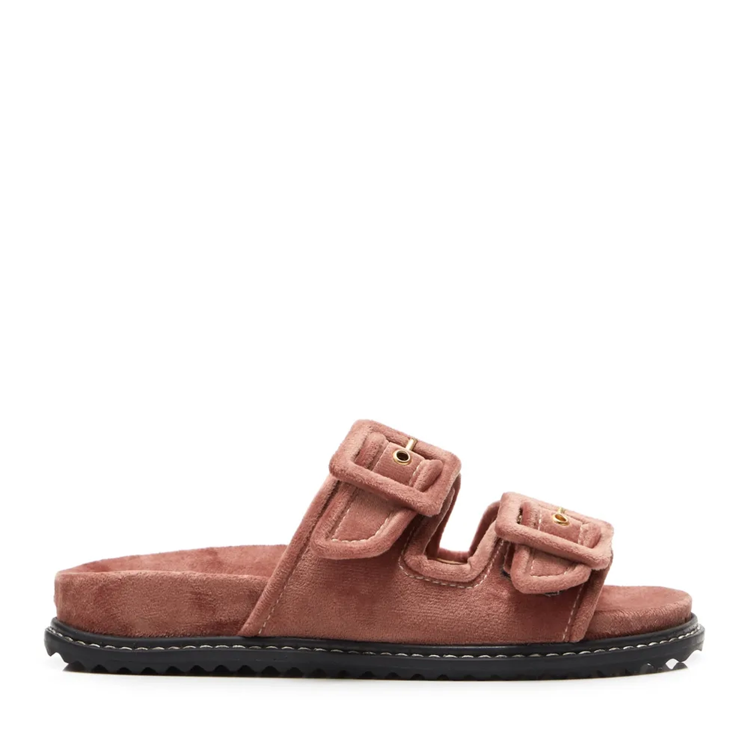 A Slider Berlim é produzida em veludo. Ela apresenta fivelas forradas em camurça e forro em couro. Conta também com solado emborrachado e vira pespontada. O modelo é perfeito para quem busca máximo conforto sem perder o estilo.