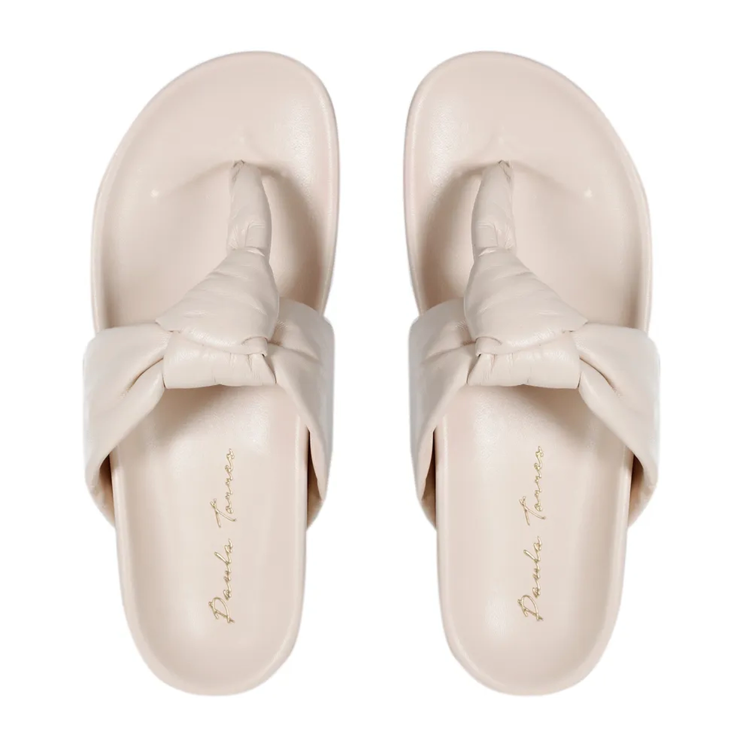 A Slider Mel é confeccionada em couro. O modelo é bem minimalista, trazendo como diferencial o cabedal que forma um nó central. O solado de borracha oferece melhor fricção ao contato com o solo, e a palmilha revestida em couro traz conforto aos pés. Modelagem que destaca o trabalho handmade Paula Torres, com a melhor qualidade!