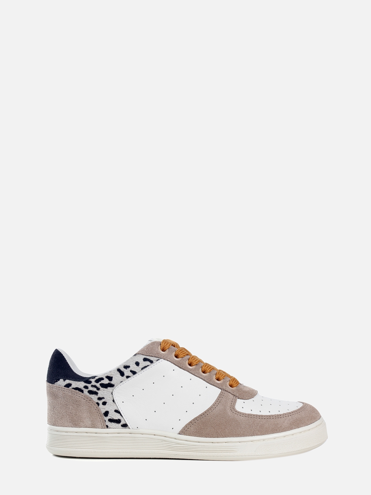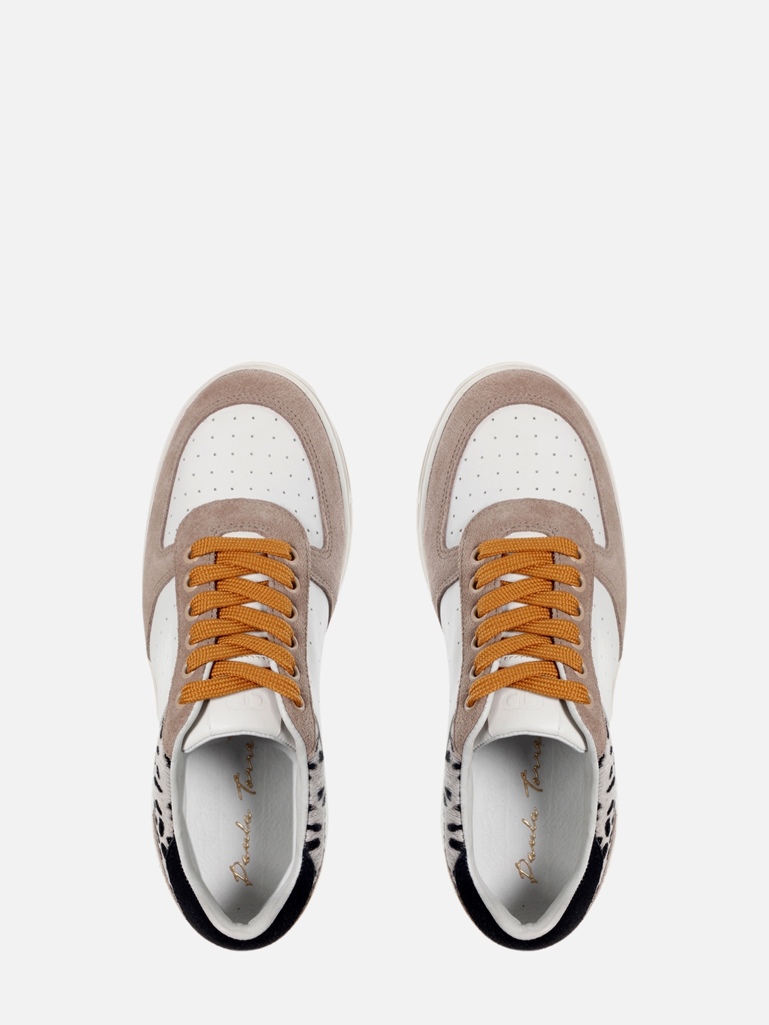 O Tênis Brookly é confeccionado em couro. A modelagem clássica, recortes, microfuros, solado grosso e o mix de texturas criam um modelo único Paula Torres. A combinação de cores e material trazem um estilo despojado: couro branco, camurça fendi, couro em animal print nas bordas superiores, e camurça preta na parte do calcanhar. Você pode utilizá-lo com diferentes cores de cadarços, para deixar o modelo mais adequado ao seu estilo. Moderno e confortável, totalmente Paula Torres!