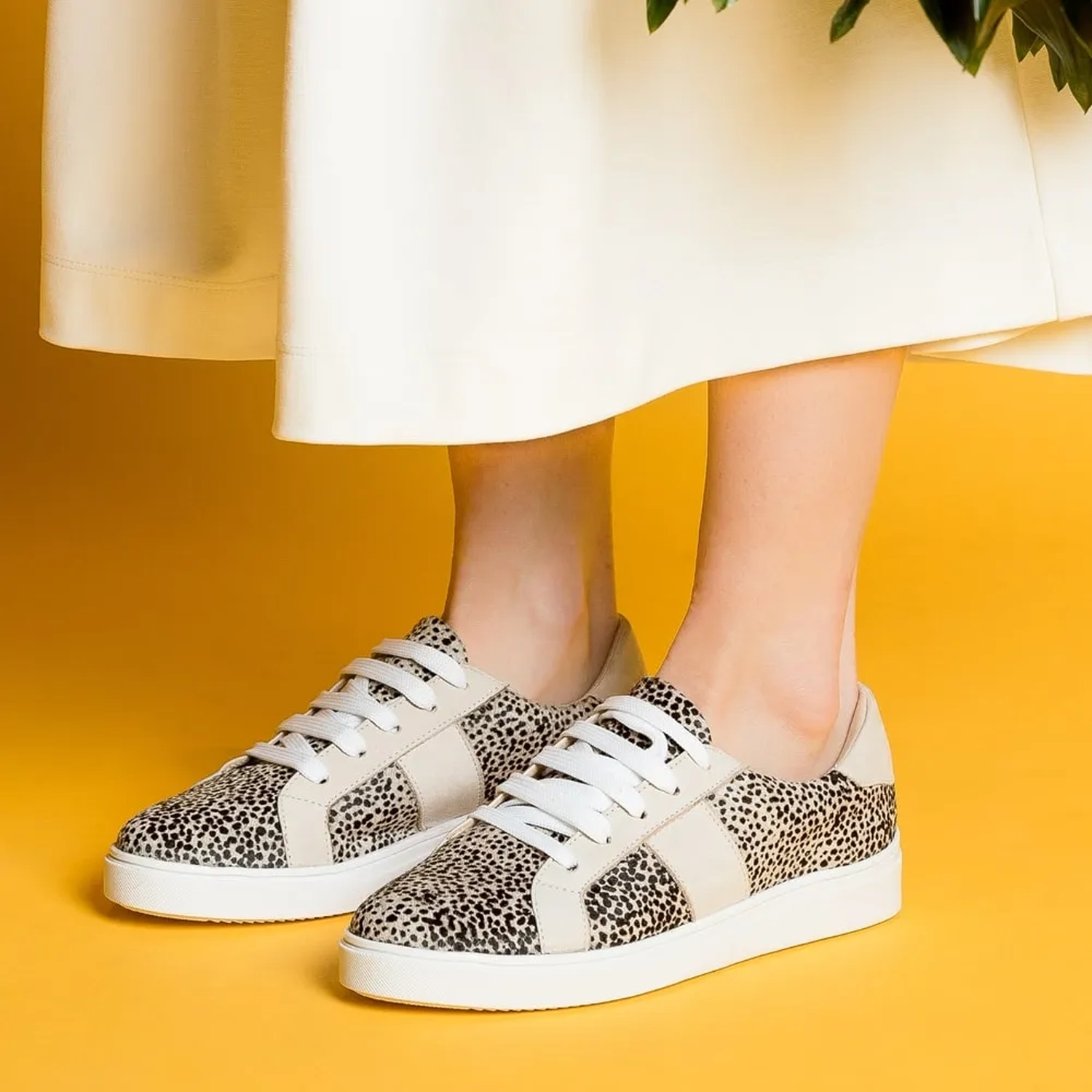 O Tênis Gisa é produzido em pelo com estampa animal e detalhes laterais em couro. A peça possui cabedal com recortes e pespontos, bico redondo, solado emborrachado e fechamento por cadarço. Aposte nesse modelo para dar um toque urbano e cool ao visual. Cor: Estampado